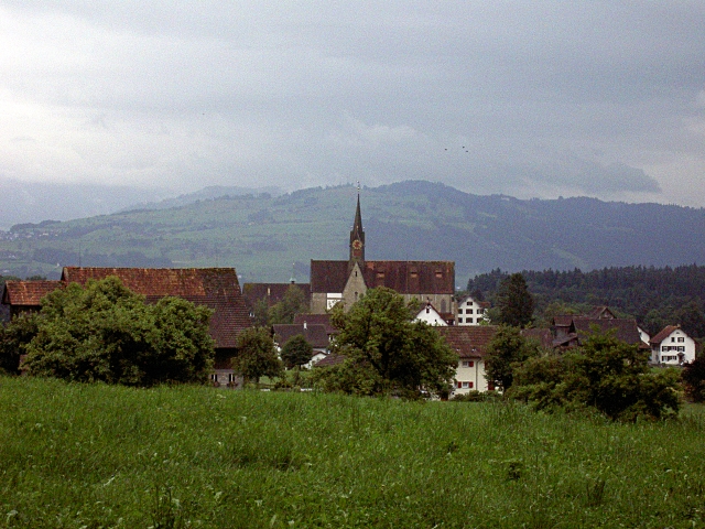 View of the church in Kappel am Albis, from the hills nearby.